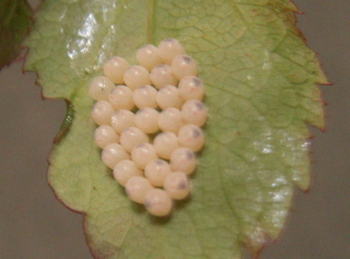 卵はクサギカメムシにそっくりですが生まれてきたのはナガメにそっくり。