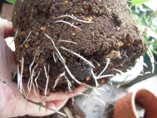 予め湿らせた土をいれた8号鉢に植え替えました。
