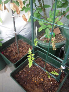 ロックウールに挿して家の中で越冬した挿し穂に