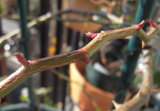 さて我が家のベランダではバラの新芽が春を感じささせてくれます。