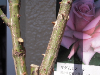 12月にバラの家から届いたつるミミエデンの新芽です。