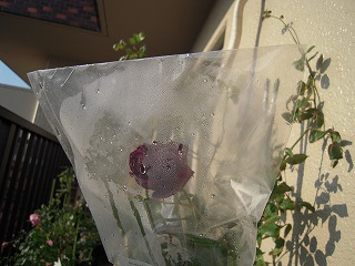 あんまり咲かないから先週からビニール袋がけを遂行した