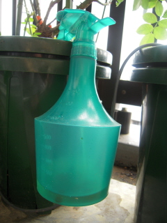 唐辛子の輪切りを入れたままスプレーしています