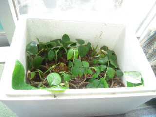 根が出た物はプラ鉢や紙ポットに植え替えて