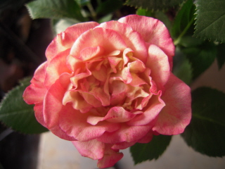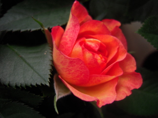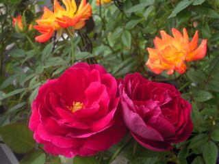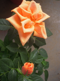 名前が解らないオレンジと黄色の絞りミニ薔薇です。
