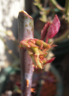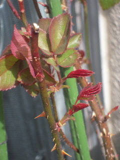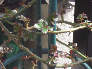 さて我が家のベランダではバラの新芽が春を感じささせてくれます。