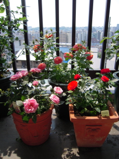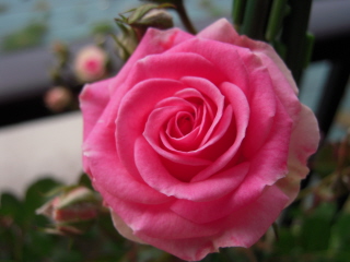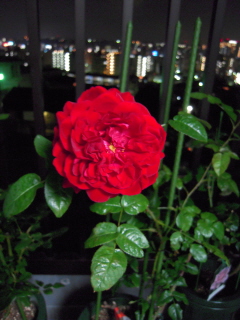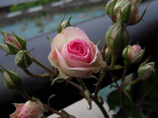 寂しいベランダに一輪の薔薇が色を添えてくれています。