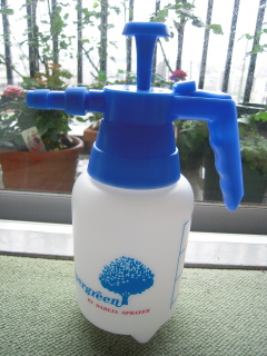 今日、ローズニームを撒くのに加圧式のスプレーを使いました。