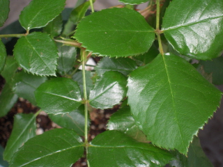 私は5枚葉以上の葉ならその薔薇と相談して切ります。