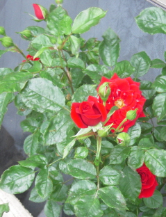 沢山の薔薇があるベランダで真っ先に目に飛び込んで来る