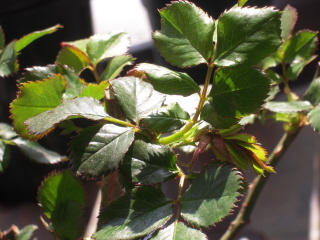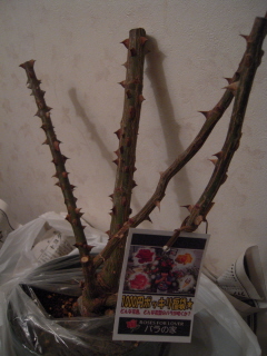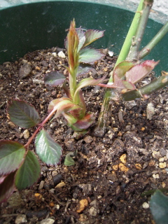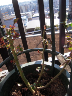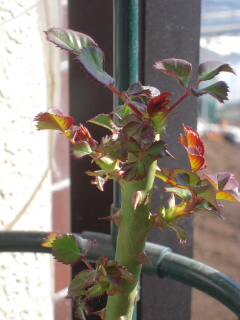12月にバラの家から届いたつるミミエデンの新芽です。