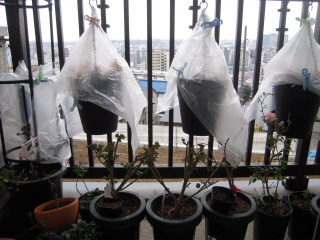 ベランダの薔薇達にはせっせとアグリチンキやローズニームで