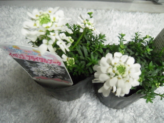 先日購入したイベリスブライダルブーケは1鉢に2苗植えました。