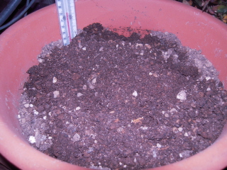 前シーズンは購入したお店の土を使って鉢増しをしました。