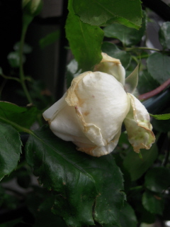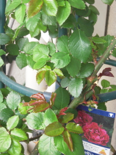 実はこの薔薇は寒さが厳しい間ビニールをかけていたので