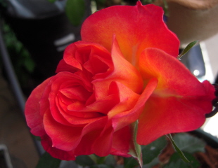今年の一番花は名前の分らないミニバラでした。