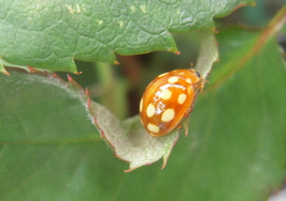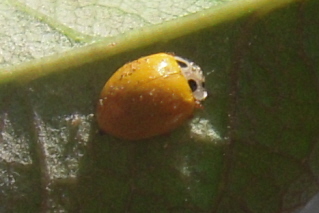カメムシの一種かと思いましたがシロホシテントウのようです。